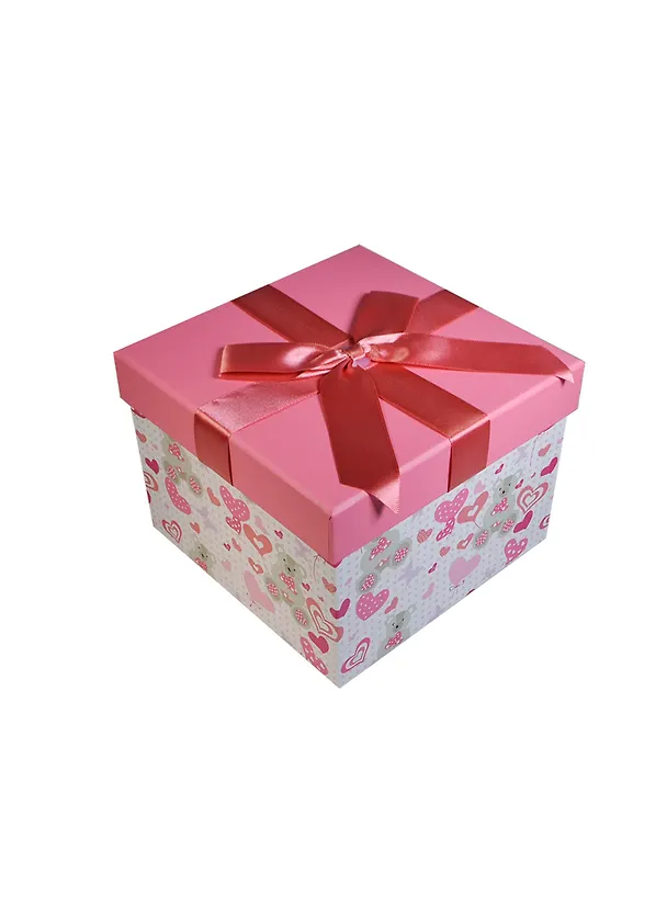 Коробка подарочная "Розовые медведи" 14,5*14,5*10,2см, картон, декор бантик, Вейксинг
