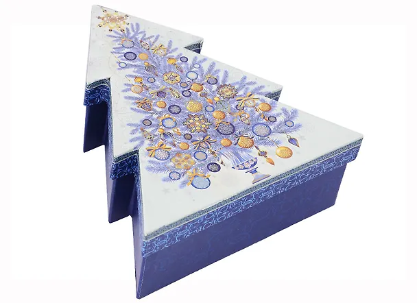 Коробка подарочная "Золото на синем" 18*16*6,5 Новый год, картон