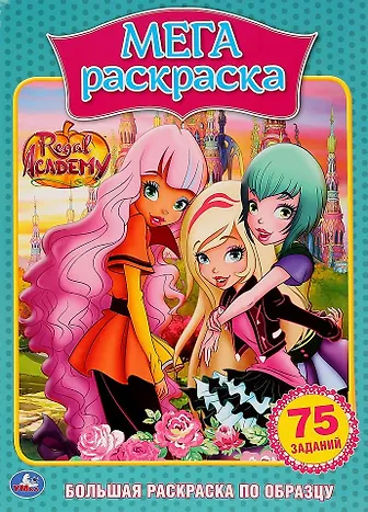 Королевская академия. 75 заданий. Большая раскраска по образцу