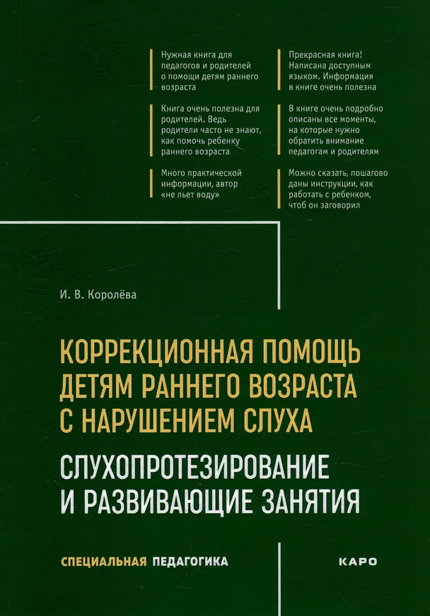В третьем издании пособия представлена методика и организация коррекционно-развивающей работы с детьми с нарушением слуха раннего возраста, начиная с 1 месяца, в том числе слепоглухими, на этапе слухопротезирования. Подробно рассматривается организация психолого-педагогической помощи ребенку, описаны занятия, направленные на адаптацию ребенка к слуховым аппаратам и кохлеарным имплантам, развитие у малыша слухового восприятия, предречевых вокализаций, речи, коммуникативных навыков. Особое внимание уделяется обучению родителей развитию слуха и речи у слухопротезированного малыша в домашних условиях.