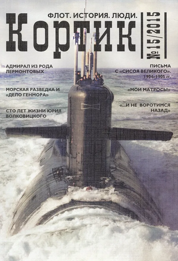 Целый ряд материалов 15-го выпуска сборника статей «КОРТИК. Флот. История. Люди» посвящён матросам русского и советского флотов — их судьбам, их письмам и их воспоминаниям. Статья нашего неизменного автора С.А. Гладких рассказывает о дневнике минёра А.А.Шеромова (1894-1899). Публикация писем писаря В.А.Смородова вновь вернёт нас к трагической судьбе 2-й эскадры флота Тихого океана. Фрагмент из мемуаров врача Г.Н.Максимова с иронической точки зрения повествует о его опыте общения с матросами летом 1917 г. Воспоминания Е.А.Рогачева позволяют узнать об особенностях боевой службы на атомном ракетоносце в середине 1970-х гг. Конечно, не обойдён и командный состав флота — читатели прочтут о судьбе