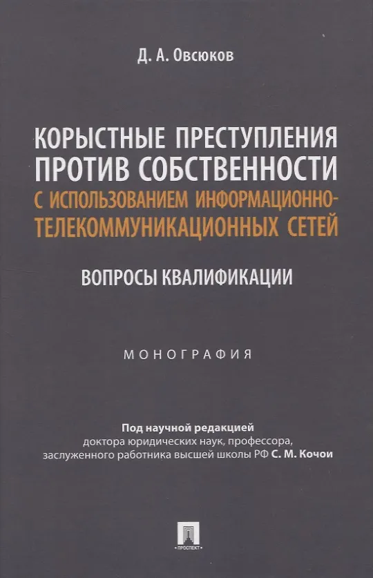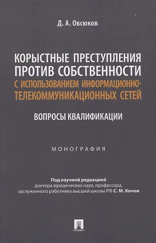 В монографии рассмотрены вопросы ответственности за корыстные преступления против собственности, совершаемые с использованием информационно-телекоммуникационных сетей (в том числе сети "Интернет").