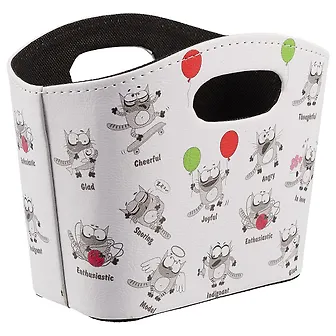 Уют в доме создают детали. Например, симпатичная корзинка для хранения с покрытием из искусственной кожи. На ней изображены весёлые эмоциональные котики. Вы можете расставить такие корзинки по квартире и хранить в них открытки, маленькие вазочки и другие красивые вещи.
