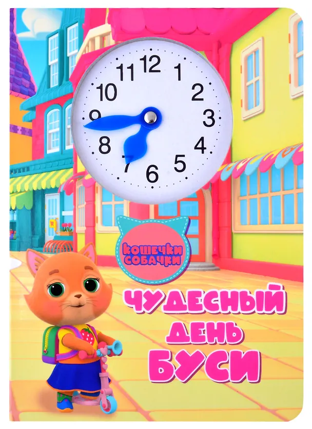 Красочные книги с циферблатом и двигающимися стрелочками научат ребёнка определять время и самостоятельно устанавливать его на часах. Тренироваться будет не скучно, ведь малышу помогут любимые персонажи из мультфильма "Кошечки-собачки".