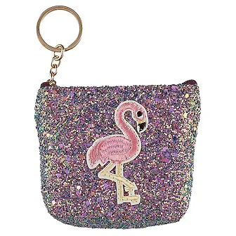 Кошелек на молнии с блестками Фламинго (11,5х9) (ПВХ бокс)
