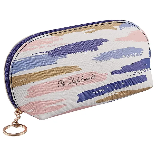 Косметичка, которую удобно взять с собой в дорогу, подойдёт активным творческим девушкам. Посмотрите, какие нежные цвета – бежевый, розовый, синий и лавандовый. Косметичка сделана из кожезаменителя, а значит, переживёт встречу с дождём или пролитым напитком. Внутри у неё тканевая подкладка, которую можно будет легко отстирать, если растечётся тушь или откроется пудра.