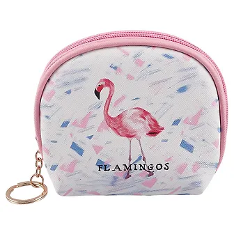Небольшая косметичка, которую удобно взять с собой в дорогу, подойдёт активным творческим девушкам. Посмотрите, какой славный фламинго вышагивает на фоне ярких пятнышек краски! Косметичка сделана из кожезаменителя, а значит, переживёт встречу с дождём или пролитым напитком. Внутри у неё тканевая подкладка, которую можно будет легко отстирать, если растечётся тушь или откроется пудра.