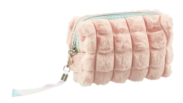 Очень классная косметичка, она теперь моя самая любимая. Когда я ее взяла в магазине в руки, то влюбилась в нее с первого взгляда. На ощупь косметичка супер мягкая, пушистенькая. по весу очень легкая, поэтому смело можно всегда брать с собой. Цвет красивый, нежно розовый, но есть и в других расцветках. Замок застегивается отлично, мех не мешает. Довольно вместительная.