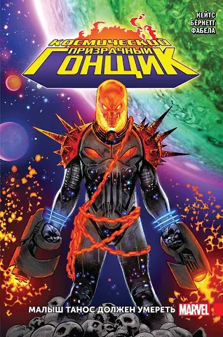 ФРЭНК КАСЛ ЗАКЛЮЧИЛ СДЕЛКУ С ДЬЯВОЛОМ И ТОТ СДЕЛАЛ ЕГО ПРИЗРАЧНЫМ ГОНЩИКОМ. После договора с Галактусом он стал Космическим. А служба Таносу сделала его... трупом?! Не переживайте, Касла не так просто убить. Он вернулся... и придумал, как сделать вселенную лучше! Всё началось с идеи, столь простой, что диву даёшься, как никто этого до тебя не придумал. Но, как и любое достойное дело, провернуть это будет нелегко. Касл сразится с космическими акулами, раскидает Стражей Галактики будущего и наткнётся на Галактуса во время драки в баре! А, и не забудьте про... младенца Таноса?! Это Фрэнк... эм... Кара... эм... Космический Призрачный Гонщик — самый безумный герой, которого видывал свет! В СБОРНИ