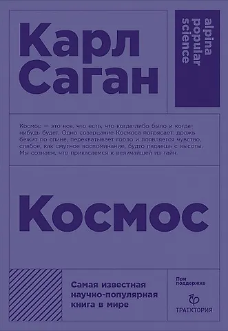 «Космос» — одна из самых продаваемых научно-популярных книг всех времен. В ней прослеживается почти четырнадцать миллиардов лет космической эволюции, превративших материю в сознание, и исследуются такие темы, как происхождение жизни, человеческий мозг, египетские иероглифы, миссии космических кораблей, смерть Солнца, эволюция галактик, а также обстоятельства и личности, которые помогли сформировать современную науку.