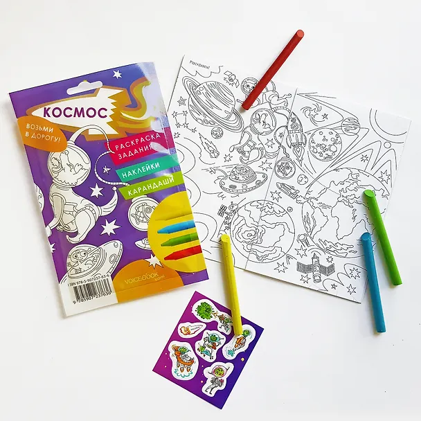 «Возьми в дорогу» — серия игровых дорожных наборов для детей! В набор входит раскраска с заданиями, восковые карандаши, наклейки и безграничный увлекательный мир фантазий! Скучать ребенку в пути не придется, если вы захватили с собой наборчики VoiceBook: с ними можно представить себя водителем машины или даже самолета, отправиться в волшебное путешествие в страну фей и единорогов, разобраться в устройстве корабля, узнать, что такое Азбука Морзе или Семафорная азбука, раскрасить дорожные знаки, разгадать загадки египетских богов, узнать, что прятал в гробнице Фараон, отправиться в Джунгли или взлететь в Космос, помедитировать, разукрашивая бесконечные геометрические узоры, и даже попасть в мир Юрского периода с забавными динозаврами!