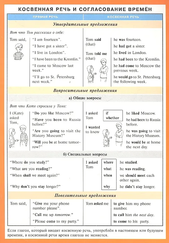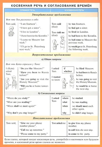 Очень понравилась карточка. В ней в наглядном и ёмком виде изложены правила перехода от прямой речи к косвенной в английском языке. Формат карточки позволяет носить её в тетради, если необходимо.