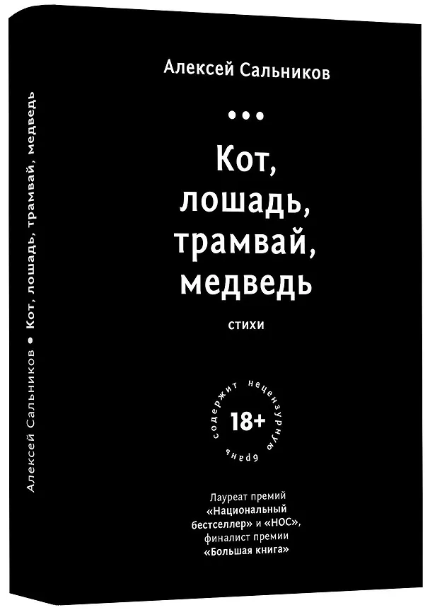 Писать стихи Алексей начал в молодости и быстро стал знаковой фигурой уральской поэтической школы. Поэзия Сальникова — это ключ к пониманию и осмыслению его прозы; фундамент его творчества. Эта книга — возможность познакомиться с Сальниковым-поэтом и по-новому понять Сальникова-прозаика. В сборник «Кот, лошадь, трамвай, медведь» вошли тексты, охватывающие более пятнадцати лет жизни автора."