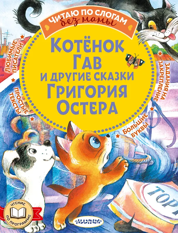 Перед вами лучшая книга для каждого малыша! Весёлые сказки Г. Остера обязательно понравятся начинающему читателю. Здесь маленький котёнок дружит с непоседливым щенком, мышонок может перехитрить коварного лиса, а в джунглях живут непоседливые зверята, которые с удовольствием играют в забавные игры. Небольшие истории научат малышей дружбе и поднимут настроение. Благодаря крупным буквам и ударениям ребята смогут прочитать сказки самостоятельно, а упражнения помогут им закрепить навыки слогового чтения.