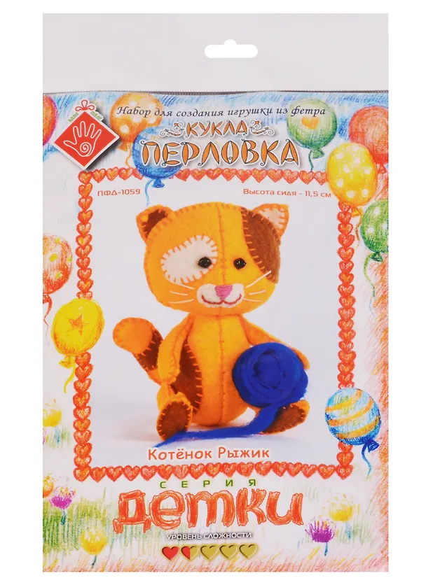 Котенок Рыжик Кукла-перловка Набор для создания игрушки из фетра (ПФД-1059) (Детки) (упаковка)