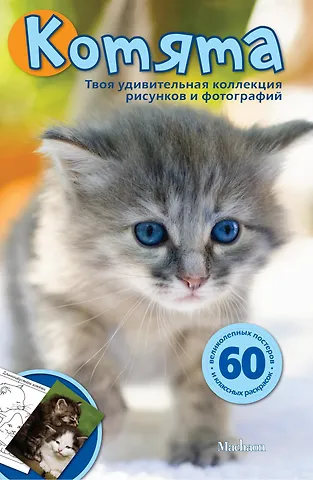 Целый альбом милоты! Глянцевый альбом формата А4 с фотографиями котят не оставит равнодушным никого, что уж говорить о любителях кошек! Прекрасно выполненные фотографии, хорошая цветопередача, мелованная бумага. Раскраска на обороте каждого листа. Задумка вроде интересна, но меловку не особенно удобно раскрашивать.