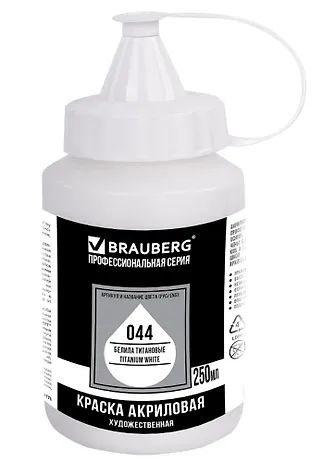 Краска акриловая 250мл белила титановые, художественная BRAUBERG ART CLASSIC