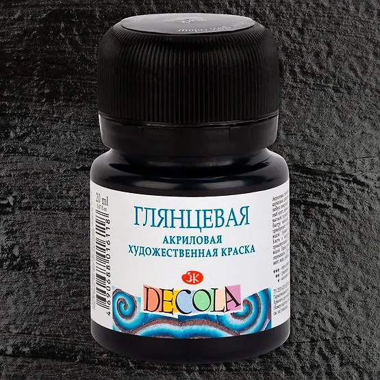 Краска акриловая черная 20 мл. "Декола" глянцевая ЗХК отлично подходит для декоративных и оформительских работ. Краска ложится ровным слоем, быстро сохнет, после высыхание не оставляет ощущения липкости на пальцах. Не смываются. Рекомендую к покупке.