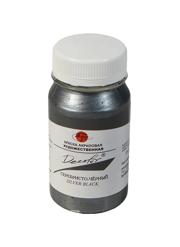 Краска акриловая "Деколор" серебристо-черный,100мл,банка, Таир