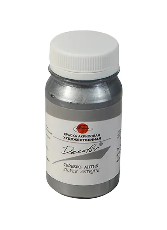 Краска акриловая "Деколор" серебро антик,100мл,банка, Таир