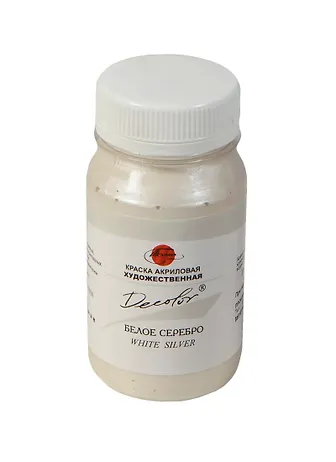 Краска акриловая "Деколор" серебро белое,100мл,банка, Таир