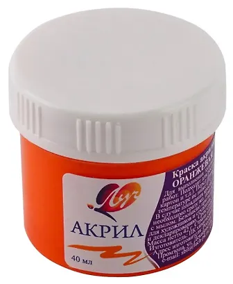 Акриловая краска яркого оранжевого цвета. Отлично подойдёт как для росписи по дереву, так и для живописи. Краска густая, сохнет быстро. Имеет глянцевый оттенок. Интернет-заказ очень быстро доставили в розничный магазин "Буквоеда", а товар надёжно упаковали в воздушно-пупырчатую упаковку. Хорошее соотношение цена-качество, рекомендую обязательно приобрести.