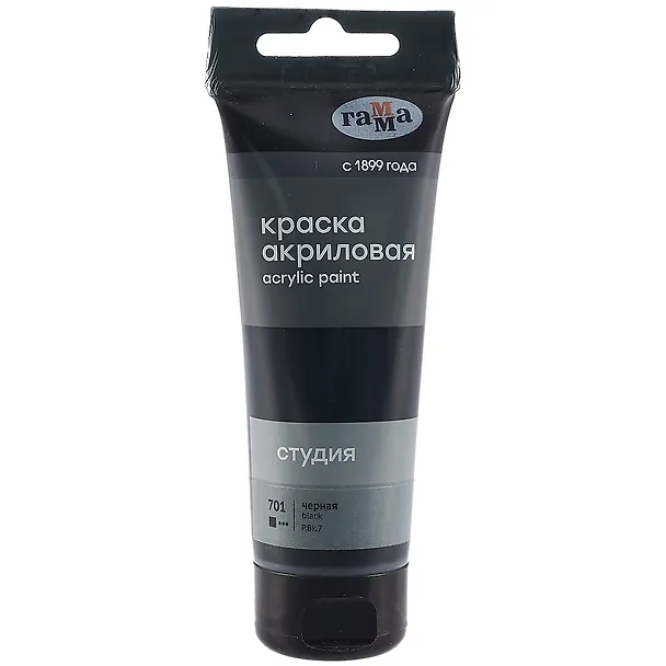 Новая акриловая краска серии «Студия» чёрного цвета предназначена для художественно-живописных и декоративно-прикладных работ. Главные отличия: насыщенный цвет, густая консистенция, высокая адгезия, прочность красочного слоя. После высыхания краска становится глянцевой, практически не темнеет, специальная добавка позволяет максимально раскрыть красоту цвета. Художественный акрил прекрасно разносится, подходит для бумаги, картона, грунтованного холста, дерева, стекла, кожи, ткани. Время высыхания: от 10 минут до 1 часа в зависимости от толщины слоя. Прозрачный корпус тубы позволяет увидеть цвет краски, а удобная крышка флип-топ предотвращает высыхание. Объём тубы — 75 мл.