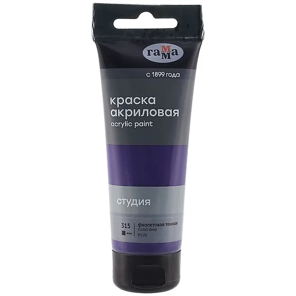 Новая акриловая краска серии «Студия» тёмного фиолетового цвета предназначена для художественно-живописных и декоративно-прикладных работ. Главные отличия: насыщенный цвет, густая консистенция, высокая адгезия, прочность красочного слоя. После высыхания краска становится глянцевой, практически не темнеет, специальная добавка позволяет максимально раскрыть красоту цвета. Художественный акрил прекрасно разносится, подходит для бумаги, картона, грунтованного холста, дерева, стекла, кожи, ткани. Время высыхания: от 10 минут до 1 часа в зависимости от толщины слоя. Прозрачный корпус тубы позволяет увидеть цвет краски, а удобная крышка флип-топ предотвращает высыхание. Объём тубы — 75 мл. • Цв