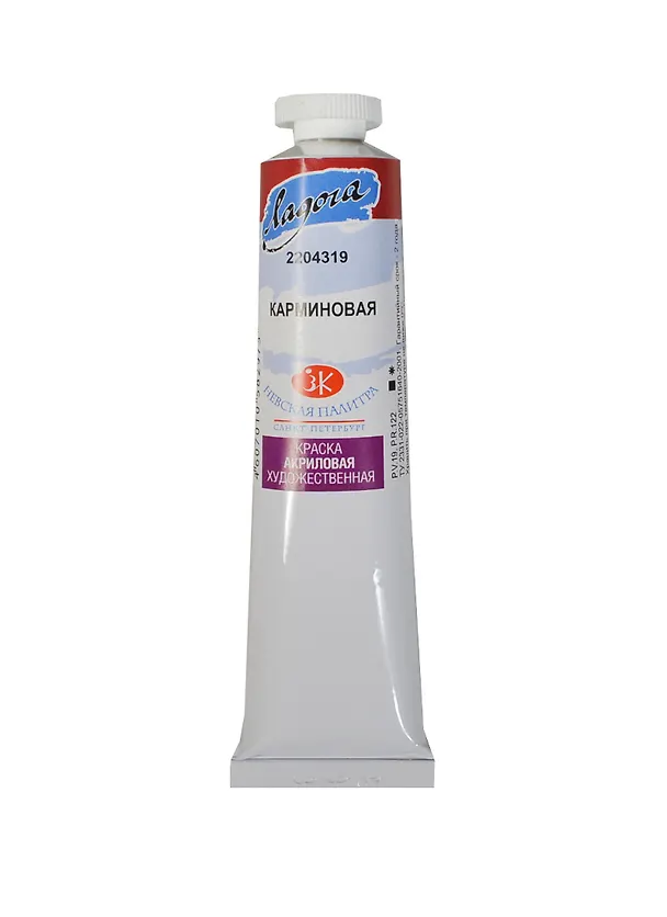 Краска акриловая "Ладога" карминовая,46мл,в тубах, ЗХК