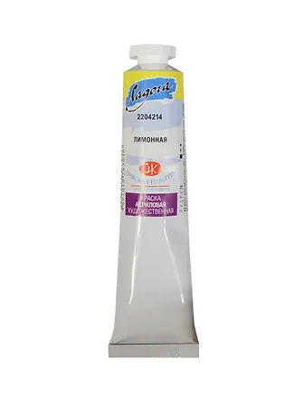 Краска акриловая "Ладога" лимонная,46мл,в тубах, ЗХК