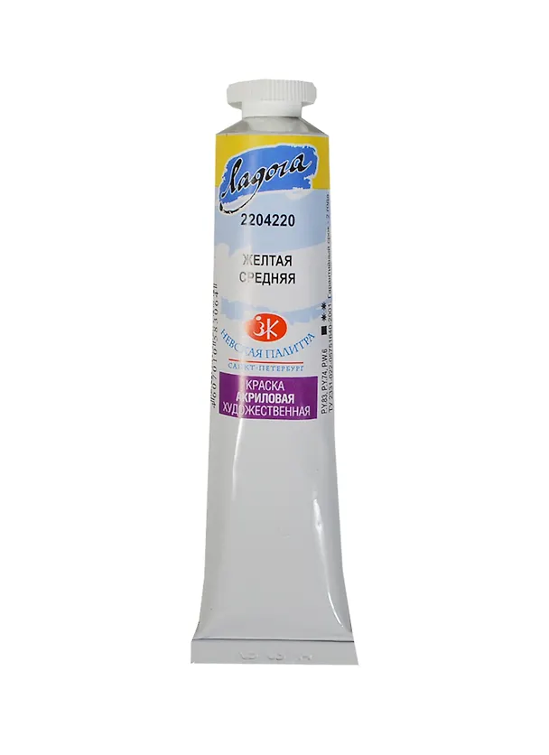 Краска акриловая "Ладога" желтая средняя,46мл,в тубах, ЗХК