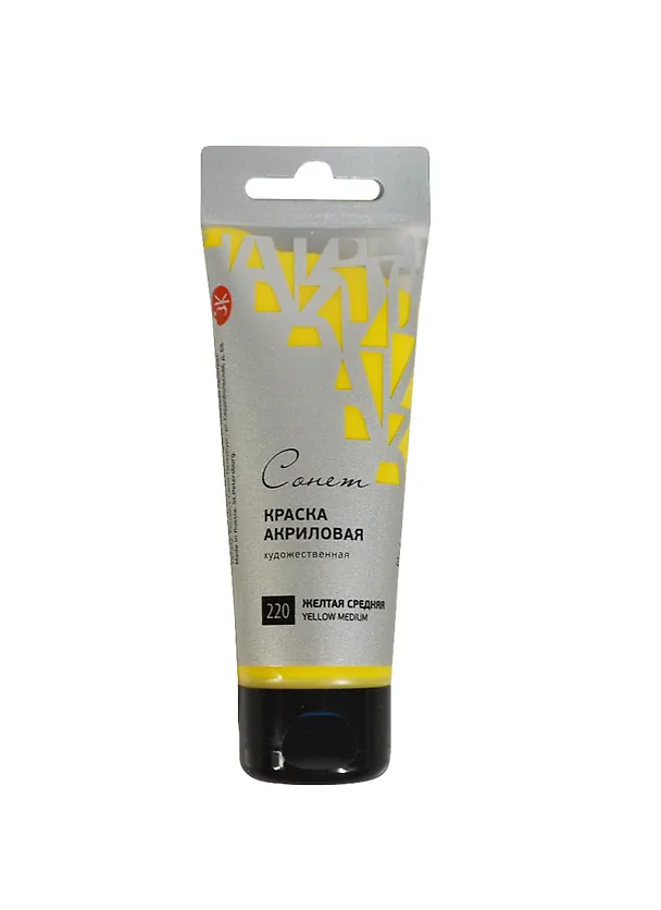 Краска акриловая "Сонет" желтая средняя, 75мл, в тубах, ЗХК