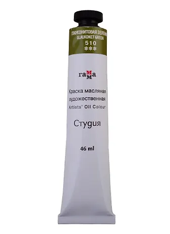 Штучная масляная краска серии «Студия» цвета глауконитовый зелёный не уступает тонкотёртым масляным краскам по степени перетира, пастозности и светостойкости. Состав красок экологически безопасен благодаря имитациям кадмиево-кобальтовой группы пигментов. Продукт идеально подходит для начинающих художников и студентов художественных училищ. Объём тубы — 46 мл.