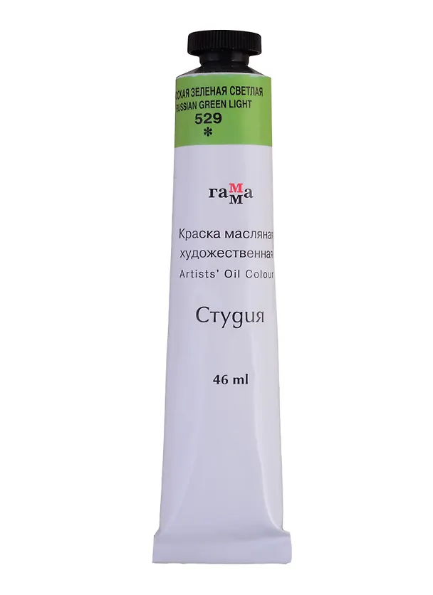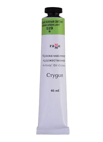 Краска хорошая, консистенция оптимальная, хорошо выдавливается из аллюминиевого тюбика. Цвет правда не совсем соответствует тому ярко-зеленому весеннему оттенку зелёного, который производитель изобразил на цветовой маркировочной полосе с широкого края тюбика. В действительности оттенок этой масляной краски ближе к серо-зеленому и оливковому оттенкам.