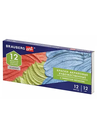 Краски акриловые 12цв 12мл художественные, металлик, тубы, BRAUBERG ART CLASSIC