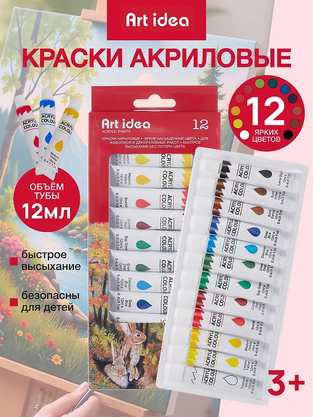 Краски вроде бы и не плохие, запах приятный, по консистенции не жидкие, смешиваются хорошо, но плохо показали себя в работе. Белила не дают плотности цвету, как будто прозрачный мазок, не качественно покрывают холст. Хотя цвета яркие , но на деле бледнее, чем хотелось. Конечно не нужно ожидать много от такой ценовой категории и возможно на других поверхностях краски поведут себя лучше, например ткань или гипс;)