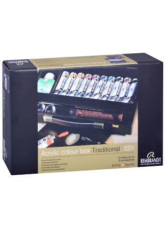 Акрил «Rembrandt» входит в одноименную коллекцию художественных товаров, созданную голландской компанией «Royal Talens» для профессиональных художников и профессионалов. Эти акриловые краски созданы на основе высококачественных пигментов в соответствии с высшими стандартами качества. Их можно использовать непосредственно из тюбиков, или разбавлять водой. Акрил «Rembrandt» отвечает самым строгим требованиям современных художников: высоко-пигментированные яркие цвета, плотная текстура для четких мазков, высшая степень светостойкости. Набор «Традиционный» включает в себя всё самое необходимое для акриловой живописи и упакован в красивый деревянный кейс.