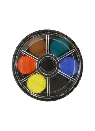 Краски акварельные 6 цветов круглый пластиковый пенал, без кисти, Koh-i-Noor