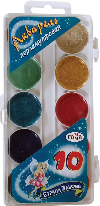 Краски акварельные 10цв "Страна эльфов" (перламутр) пл/к., б/к., подвес, Гамма