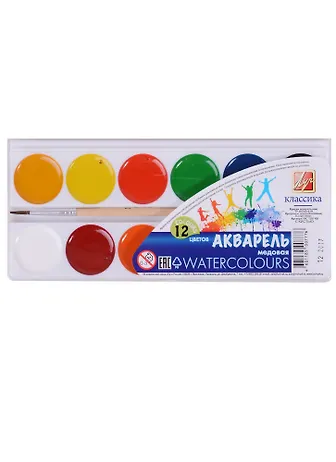 Краски акварельные 12 цветов "Классика" пластиковая упаковка, с кисточкой, Луч