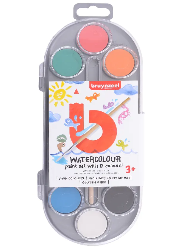 Краски акварельные 12цв "Bruynzeel", кисть