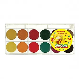 Данный производитель очень надежный, приобретаем многие товары этого производителя, поэтому в качестве акварели не сомневались, краски все яркие, не сухие, на кисточку берутся отлично, красят хорошо, картинки/рисунки получаются насыщенными, очень удобно, что в наборе целых 24 цвета, это большой плюс, есть все нужные цвета, для школы подойдет в самый раз и хватит надолго