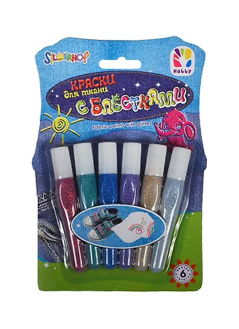 Краски для ткани с блестками HOBBY (964002-06) (6 шт.) (блистер)