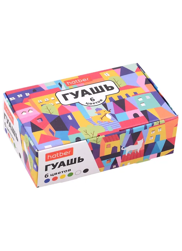Краски гуашевые 06цв 25гр "Городок" к/к, Hatber - 6 цветов.