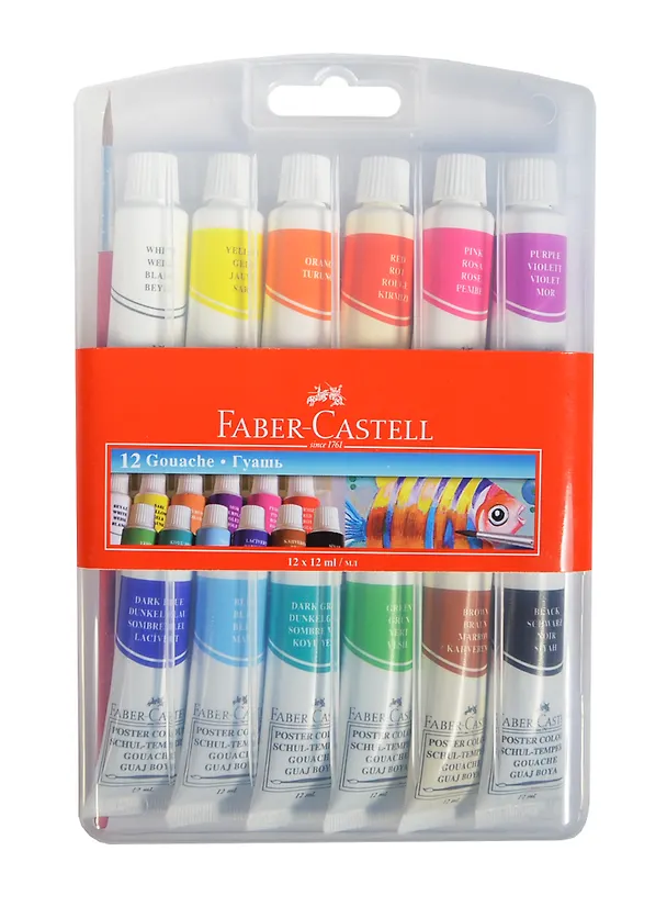 Краски гуашевые 12цв 12мл в тубах, п/к подвес, с/к, Faber-Castell