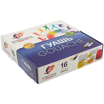 Купили данную гуашь ребёнку для росписи изделий из глины в кружок керамики. Преподаватель посоветовал именно гуашевые краски для этих целей. Выбрали набор с самым большим количеством цветов, 16 баночек в картонной упаковке. Все баночки хорошо закрыты, есть контроль вскрытия. Краска густая, есть немного жидкости сверху, нужно лишь хорошо перемешать при первом использовании. Резкого неприятного запаха нет, что радует. Гуашь яркая и укрывистая, ложится на поверхность хорошо, нет "проплешин", хватает одного-двух слоёв нанесения. Между собой краски хорошо смешиваются, получаются новые красивые оттенки. После высыхания становится матовой. От палитры и от рук отмывается без проблем. Как гуашь поведёт себя со временем на поделках в плане светостойкости посмотрим. Пока все устраивает, хотелось бы набор с большим количеством интересных оттенков. Для детского творчество очень хороший вариант, цена для такого набора приемлемая.