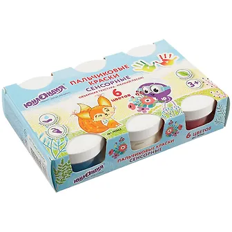 Краски пальчиковые сенсорные ЮНЛАНДИЯ "Лисенок", 6 цв. по 60 мл, в баночках 191342