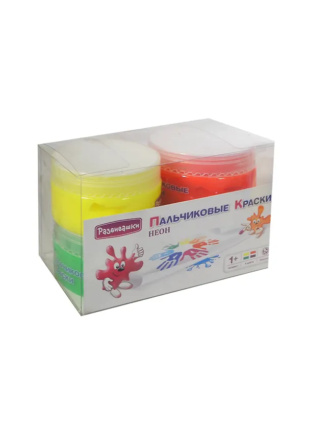 Краски, Развивашки , 4 цвета, 90гр, для рисования пальцами, неоновые, в прозрачной коробке