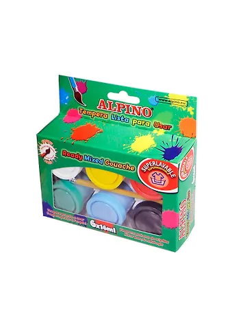 Краски темперные 06цв банка 16мл, кисточка, к/к, подвес, ALPINO