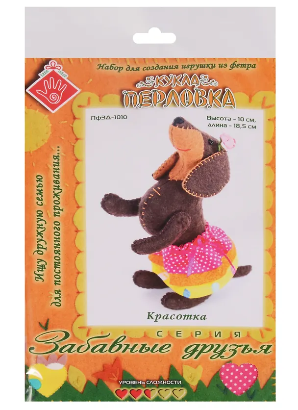 Набор для шитья игрушек из серии "Забавные друзья" Фетр - уникальный материал, его отличие от большинства тканей, — он делается как бумага, поэтому с ним можно обращаться как с бумагой, также резать, клеить, и т.д. Но в то же время он сохраняет мягкость, пластичность и уютность ткани. Куклы из фетра просты в изготовлении (их можно сшить полностью вручную) и при этом получаются великолепные игрушки – мягкие, «уютные», радостные, детально проработанные. Они могут быть и украшением интерьера или просто «любимой мягкой игрушкой».